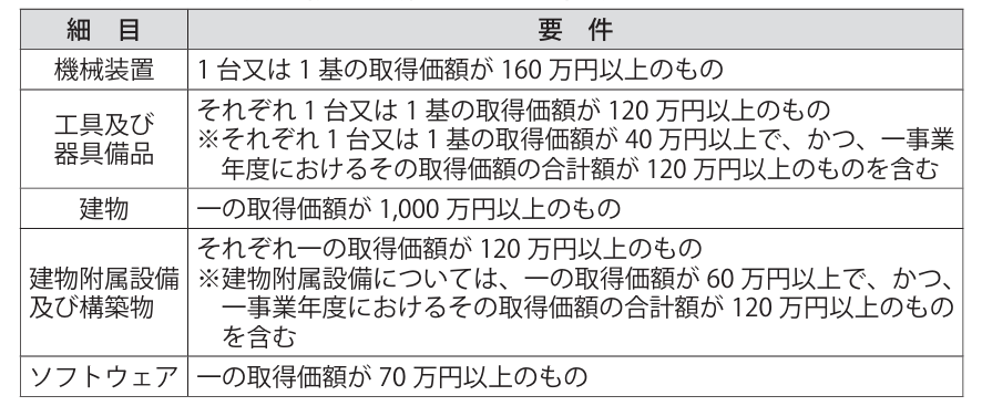 対象となる設備は次のようなものです。
